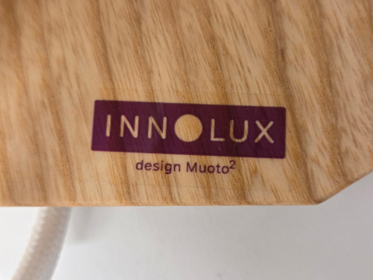 Innoluxin Kulma -pöytä-/seinävalaisin. Ihanan luonnonmukainen puinen valaisin, jonka valaistuskulmaa pystyy säätämään kallistamalla valaisinta. Design by Muoto2. Valaisin on hyvässä kunnossa.